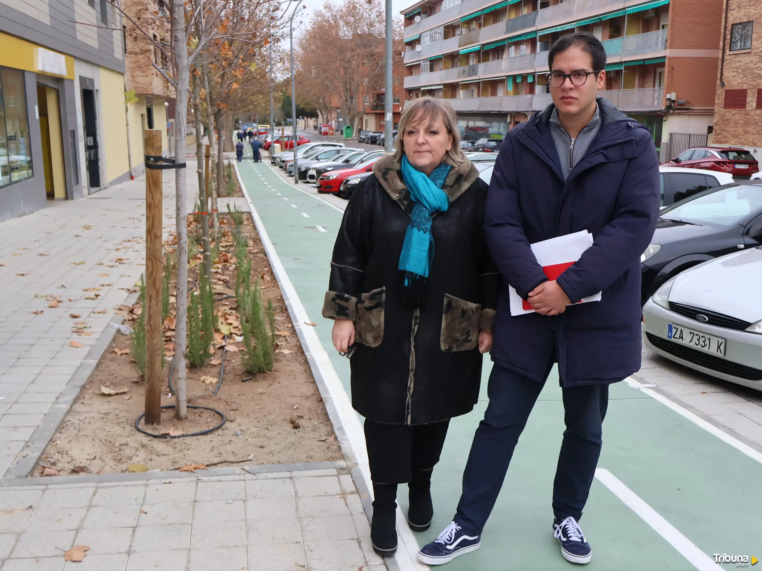 En la imagen, los concejales del Ayuntamiento de Zamora Ana Belén González y Pablo Novo en la calle de Doctor Fleming, una vez acabadas las obras de renaturalización.