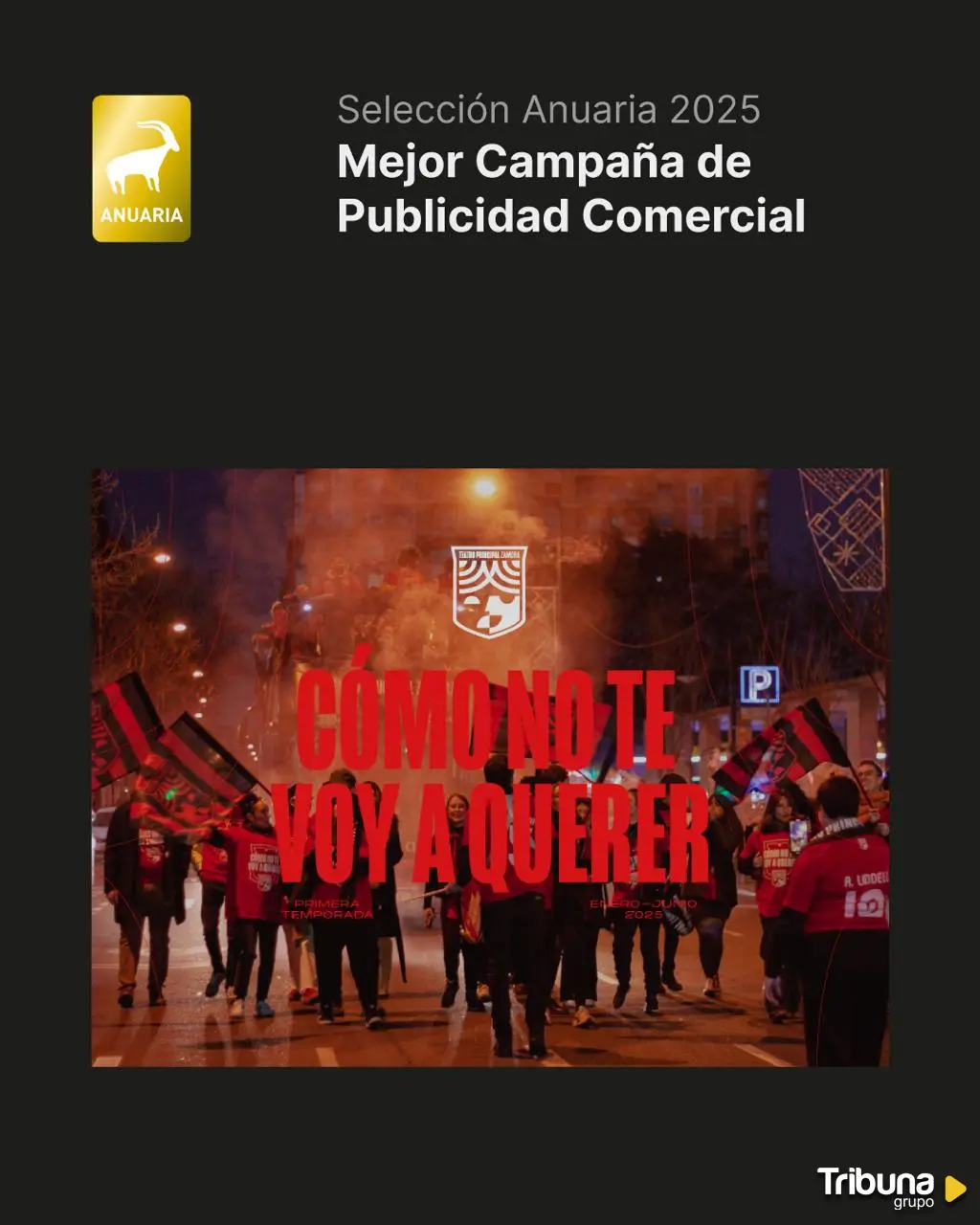 Y 'Cómo no te voy a querer', campaña que anunciaba la primera temporada del Teatro Principal de Zamora en 2025, también ha sido seleccionada por su impacto, creatividad y puesta en escena dentro de la categoría de 'Mejor campaña de publicidad comercial'. Esta campaña "venía a poner de manifiesto lo importante de la aficción para el Teatro Principal y a compararla con la hinchada de un equipo de fútbol, con un autobús de dos plantas que recorrió el centro de la ciudad causando gran expectación", recuerda David Gago, concejal del Ayuntamiento Zamora.